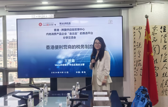 會議由青島市商務局黨組成員、副局長李鋒先生致歡迎詞。隨后,香港特區(qū)政府投資推廣署上海辦事處總監(jiān)林景富先生、香港特區(qū)政府投資推廣署總裁(消費產(chǎn)品)梁耀云先生以及RICHFUL瑞豐華北區(qū)稅務主管王靖鑫女士,先后圍繞”香港的營商優(yōu)勢”、“香港消費品市場的現(xiàn)況和機遇“及“香港便利營商的稅務制度”等三大主題進行了解讀和深度分析,分享實踐經(jīng)驗。