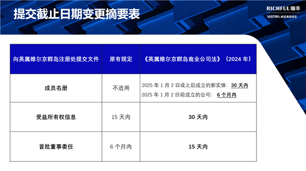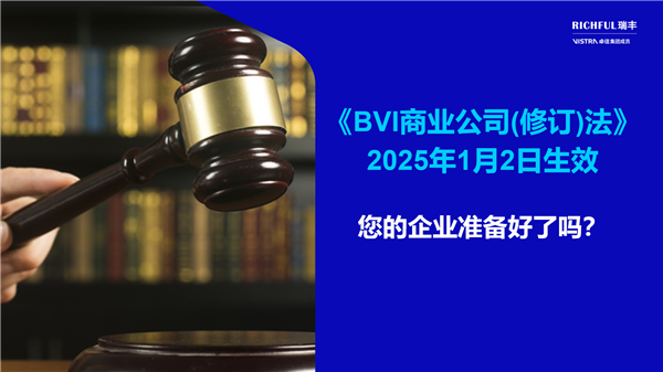 對(duì)于在BVI設(shè)有業(yè)務(wù)或計(jì)劃在該地區(qū)設(shè)立公司的企業(yè)來說,了解并準(zhǔn)備應(yīng)對(duì)這些變化至關(guān)重要。為了確保順利過渡到新法律框架,BVI的監(jiān)管機(jī)構(gòu)可能會(huì)提供詳細(xì)的指導(dǎo)方針和實(shí)施細(xì)節(jié)。RICHFUL瑞豐目前正在密切關(guān)注相關(guān)更新,積極確定提交資料的相關(guān)流程細(xì)節(jié),并將在接下來的幾周和幾個(gè)月內(nèi)與您保持持續(xù)溝通,以便于您及時(shí)調(diào)整運(yùn)營(yíng)和合規(guī)策略,確保符合新法律的要求。