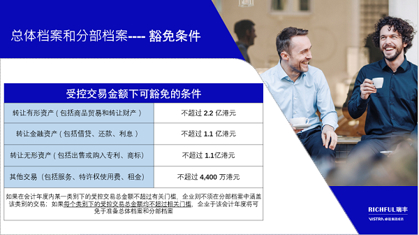2)交易金額豁免當(dāng)某類受控交易總額未超過(guò)規(guī)定門檻時(shí),可豁免本地文檔準(zhǔn)備:
