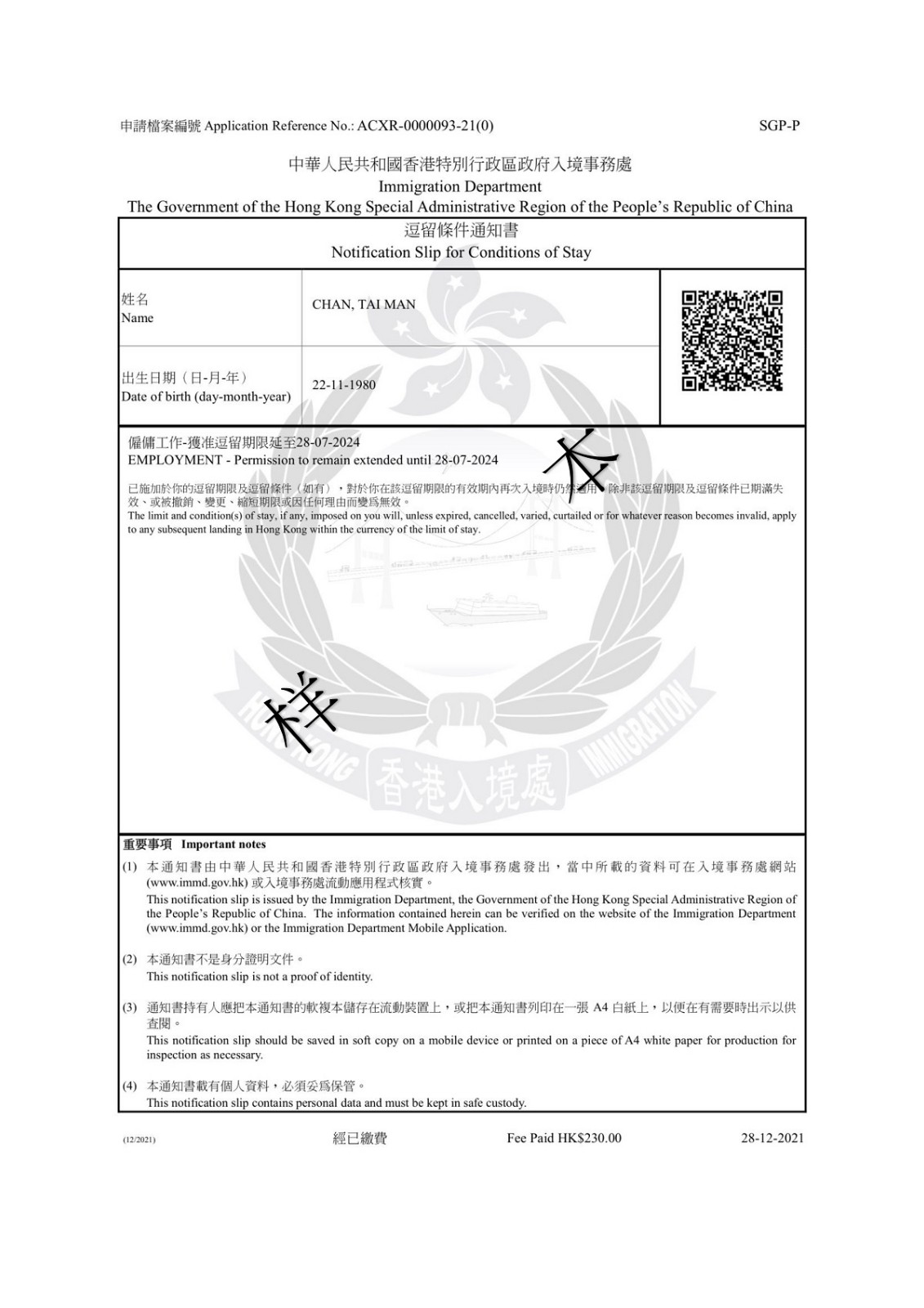 需要注意的是,根據(jù)入境處現(xiàn)行規(guī)定,所有延長逗留期限的申請(qǐng)人在遞交延期逗留申請(qǐng)及領(lǐng)取延期逗留標(biāo)簽當(dāng)天,申請(qǐng)人本人仍然需要身在香港。也就是說,電子簽證推出后,你僅是可以網(wǎng)上遞交申請(qǐng)及領(lǐng)取延期逗留標(biāo)簽,并不意味著遞交申請(qǐng)及領(lǐng)取標(biāo)簽當(dāng)天你人可以不在香港!