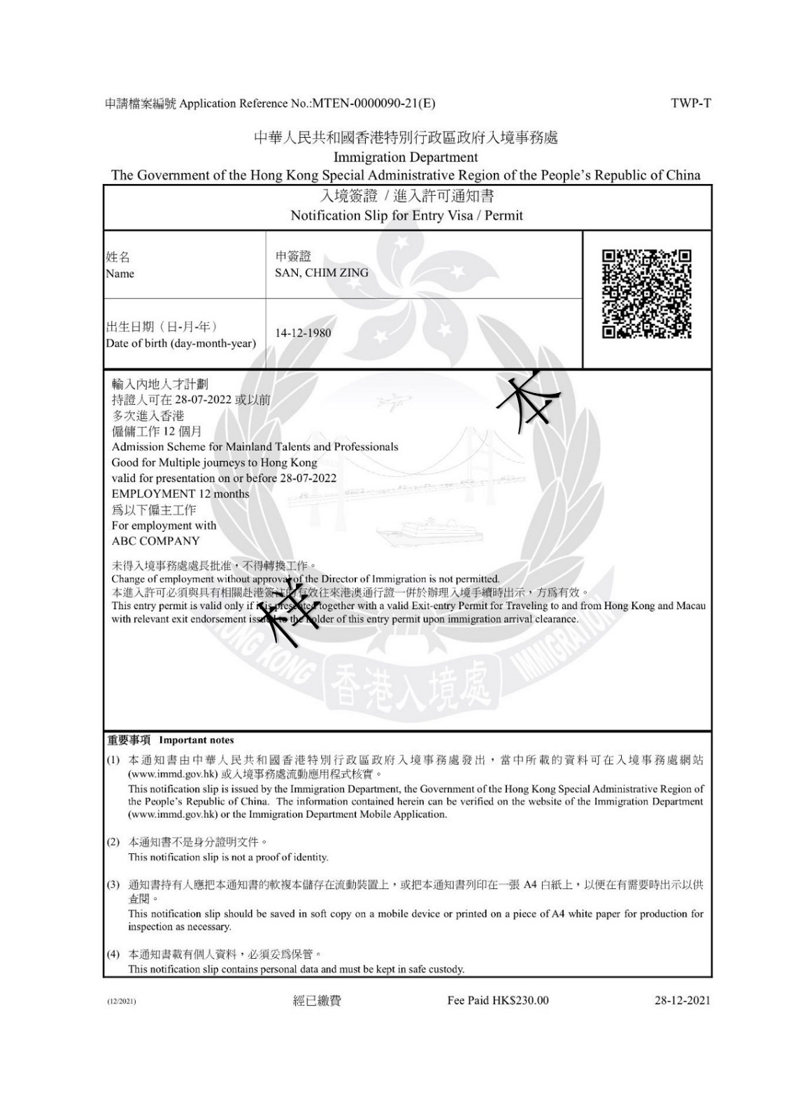 「電子簽證」持有人可把該證的軟複本儲(chǔ)存在其個(gè)人流動(dòng)裝置上,或把該證列印在一張A4白紙上,以便在有需要時(shí)供查閱。